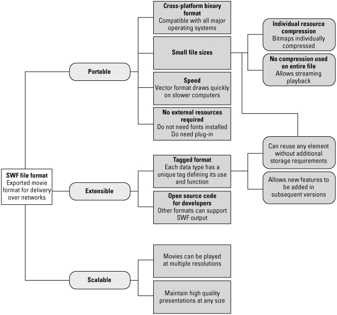Refer to Figure 1-2 for a graphic explanation of the characteristics of the Flash movie file (.swf) format.