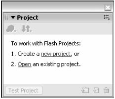 Now you're ready to create a Flash Project file to put into the project folder you created in the last step. Open Flash Professional 8. Choose Window ð Project (Shift+F8).