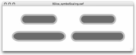 The example file shown in this section is also saved on the CD-ROM. Open 9Slice_symbolScaling.fla or .swf from the ch06 folder. |