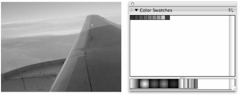 In the example, we created a Color Table from an image of an airplane wing. You can find the source bitmap (airplane.jpg) and the Photoshop Color Table (airplaneColors.act) files, along with a Flash document (airplaneColors.fla) that has a JPG imported and the color palette loaded in the airplaneColors folder in the ch07 folder on the CD-ROM. |