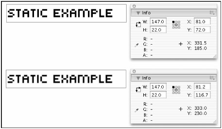 The Anti-alias for readability setting does an amazing job of rendering smooth, legible type, even at small sizes. This setting has only two drawbacks: It contributes to larger file sizes and it can only be rendered with Flash Player 8. The Anti-alias for animation setting smoothes text almost as well as the Anti-alias for readability setting but it ignores kerning information in order to create slightly smaller files and to render animated text more quickly. This is the only anti-aliasing option that will render on older versions of the Flash Player.