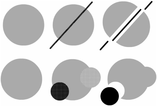 Both lines and fills are divided into segments at points of intersection. Figure 9-41 shows a fill split into two independent shapes by drawing a line on top of it (top) or modified by merging with a fill of the same color and being cut out by a fill of a different color (bottom).