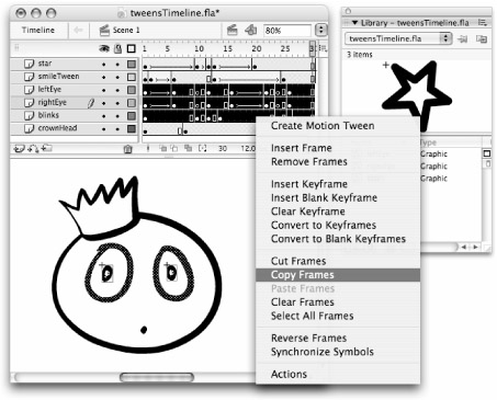With all frames in the sequence selected, choose Copy Frames from the contextual menu (see Figure 11-25), or Edit ð Timeline ð Copy Frames from the application menu (Alt+Ctrl+C or Option+z+C).