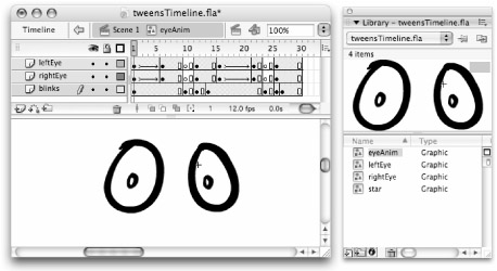 We have included two files in the Integrate subfolder of the ch11 folder on the CD-ROM for you to refer to: the original tweensTimeline.fla with tweens on the Main Timeline and the modified tweensNested.fla, with tweens moved onto symbol timelines. |
