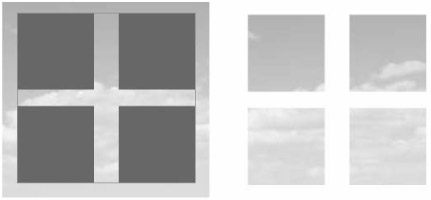 Multiple filled shapes can also be grouped and used as a mask, as long as the Mask layer doesn't also contain primitive ungrouped shapes. Grouped shapes on the same layer as ungrouped shapes will be ignored when the Mask is applied. If a mask is composed of multiple items, using a group makes it easier to position the mask, as shown in Figure 13-14.