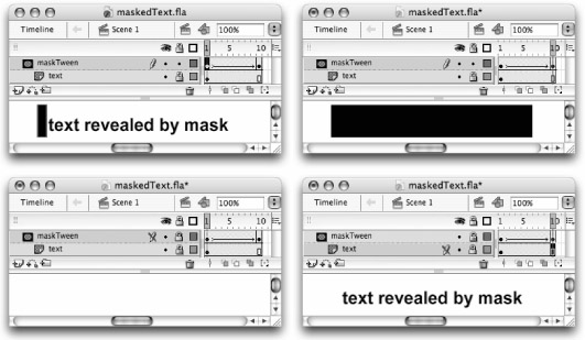 The various examples we discussed in this section can be found in the mask subfolder of the ch13 folder. You may find it helpful to examine the structure of these files to understand the many ways that Mask layers can be applied. |