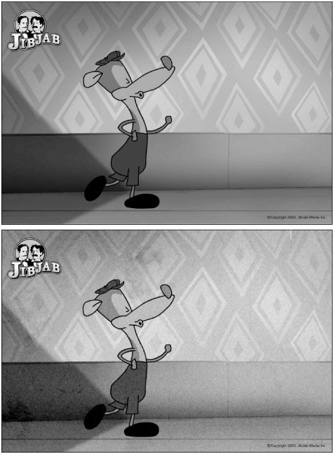 The best way to do this and to cut down on file size is to export a raster video at 320 x 240 pixels, using the standard QuickTime Video codec (Mac) or the Microsoft Video 1 codec. These codecs are for draft purposes only, so it may have banding and artifacts from compression, but the point is to generate something that even a machine that's ill-equipped for high-end video output can display easily at full frame-rate speed. This method will be of great help in revealing those areas of the animation that still need further tweaking and work before going out to the final published version. The general movement and pace of the shot will make itself known. Look for errors such as unintended jumpiness in frames, and color shifts or inconsistencies between views. Furthermore, your lip-syncing efforts will either be a glory to behold or a disaster in need of medical attention. Other things, such as sound clipping (pops in high volume sound) also become apparent here. To put it bluntly, if the preview makes you cringe, then it needs work — if not, you're on your way to final output.