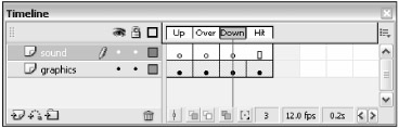Add a new layer to the button's timeline, label the new layer sound, and then add keyframes to this layer in the Over and Down columns.