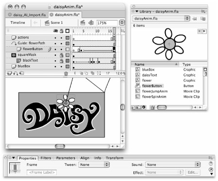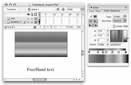 As shown in Figure 16-18, Flash recognizes text and gradient fills imported from FreeHand and Fireworks, making it easy to edit these elements directly in Flash.