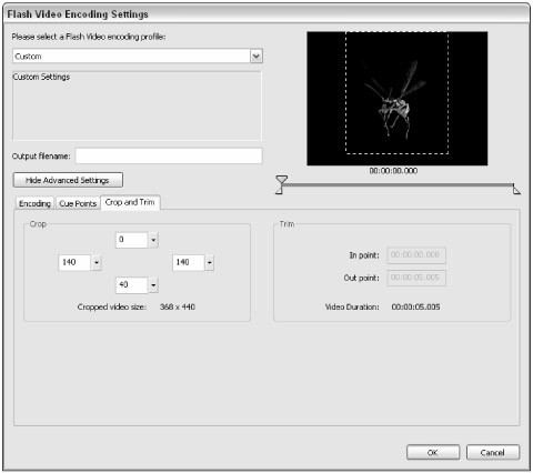 Open the Flash 8 Video Encoder application. Add the wasp_alpha.mov file to the queue.