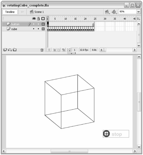 For this exercise, you can use the rotatingCube.fla file located in the ch18 folder on this book's CD-ROM. The finished file is named rotatingCube_complete.fla. |