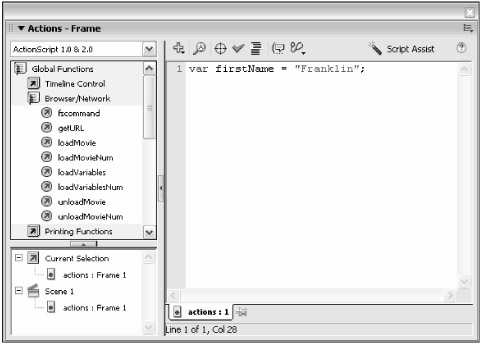 In most scripting languages, you usually don't have to declare a variable without its value; that is, you don't need to say variable firstName and then address it again with a value. In Flash ActionScript, you don't need to pre-establish a variable in order to invoke it.