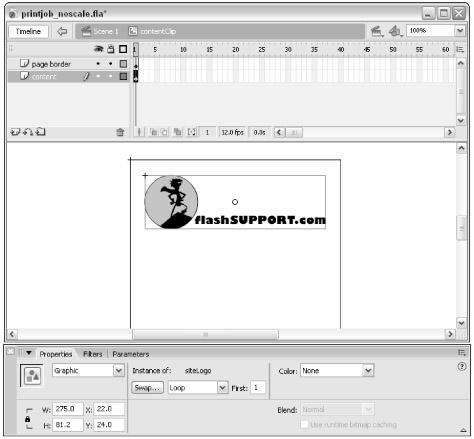 You can find the completed documents, printjob_noscale.fla and printjob_scale.fla, in the ch27 folder of this book's CD-ROM. |