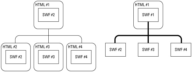 Create one HTML page that hosts one main .swf file that loads additional content through the Flash Player plug-in.