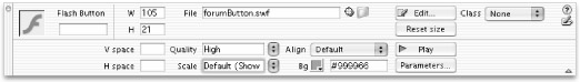 As shown in Figure 38-7, some editing options are available directly in the Property inspector when the button is selected.