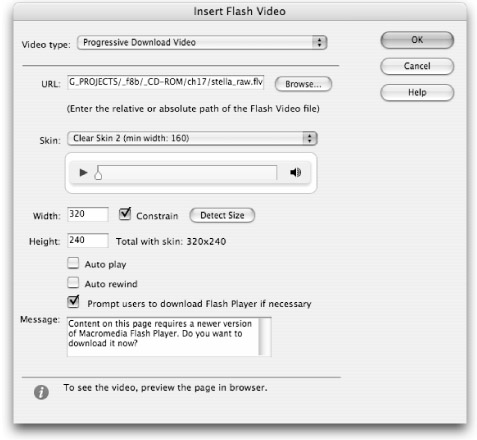 Now use the Browse button to locate a Flash Video file (or manually enter a URL for your .flv file). File paths can be relative or absolute.