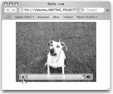 If you don't see a control bar when you finally preview your HTML file in a browser window, don't panic. One of the slick features of the components is that they only display when a mouse pointer is over the video clip — that is, on rollOver. |