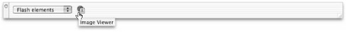 Inserting a Flash element is just as easy as inserting one of the Flash objects we described in the previous section; however, there is a separate category for elements in the Insert bar. Choose Flash Elements from the Category menu and you will see one lonely icon for the Image Viewer, as shown in Figure 38-13. The good news is that Image Viewer is a fun, functional example and there is plenty of room for you to add more Flash elements as they become available.