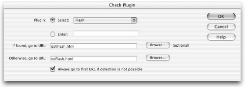 The Check Plugin dialog box opens, as shown in Figure 38-20. Select Flash from the Plugin drop-down menu.
