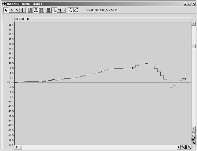 If you're having difficulty understanding the significance of bit depths, yet are familiar with the intricacies of scanning photographic images, consider the difference between an 8-bit grayscale image and a 24-bit color image of equivalent dimensions. The file size for the 8-bit grayscale image (such as a black-and-white photograph) is much smaller than the 24-bit color image (such as a color photograph). The grayscale image doesn't have as much tonal information — only 256 levels of gray — yet the 24-bit color image records a range of 16.7 million colors. Unlike photographs, sound samples don't require anything close to a range of 16.7 million values. 16-bit sound samples deliver a dynamic range of over 64,000 values, which is more than the human ear can detect. |