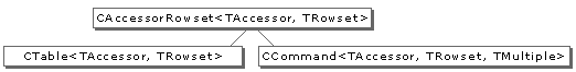 To open the rowset, execute commands, and initiate bindings, you need to create instances of CTable and CCommand. These classes derive from CAccessorRowset as shown in the following figure.