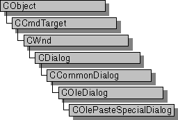 The COlePasteSpecialDialog class is used for the OLE Paste Special dialog box. Create an object of class COlePasteSpecialDialog when you want to call this dialog box. After a COlePasteSpecialDialog object has been constructed, you can use the AddFormat and AddStandardFormats member functions to add Clipboard formats to the dialog box. You can also use the m_ps structure to initialize the values or states of controls in the dialog box. The m_ps structure is of type OLEUIPASTESPECIAL.