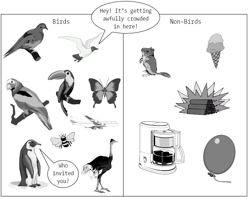 Given these rules, neither an ostrich nor a penguin could be classified as a bird, because neither can fly (see Figure 2-4).
