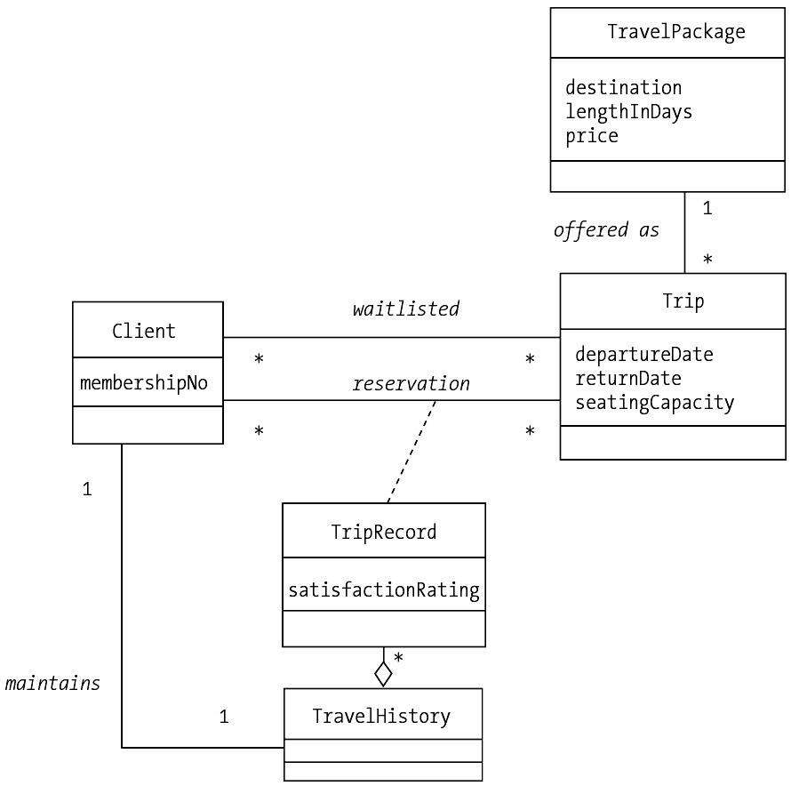Let's say that after we finish up our SRS class diagram, we're called upon to model a system for a small travel agency, Wild Blue Yonder (WBY). As a brand-new travel agency, WBY wishes to offer a level of customer service above and beyond their well-established competitors, and so they decide to enable their customers to make travel reservations online via the Web (most of WBY's competitors take such requests over the phone).