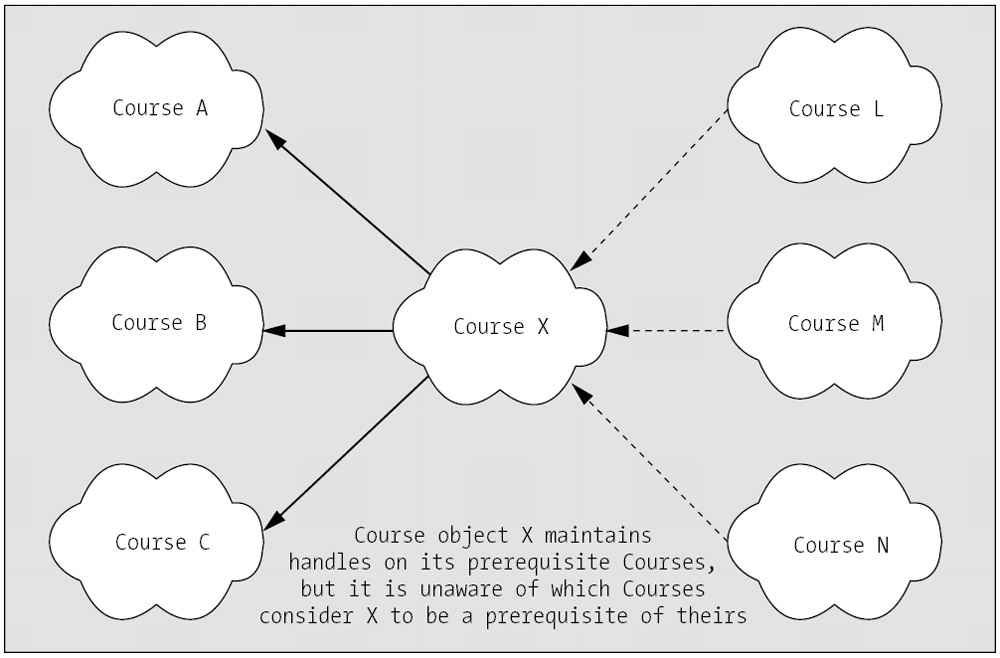 We use the AddPrerequisite method of the Course class to interrelate some of the Courses, so that c1 is a prerequisite for c2, c2 for c3, and c3 for c4. The only Courses that we don't specify prerequisites for in our test case are c1 and c5.