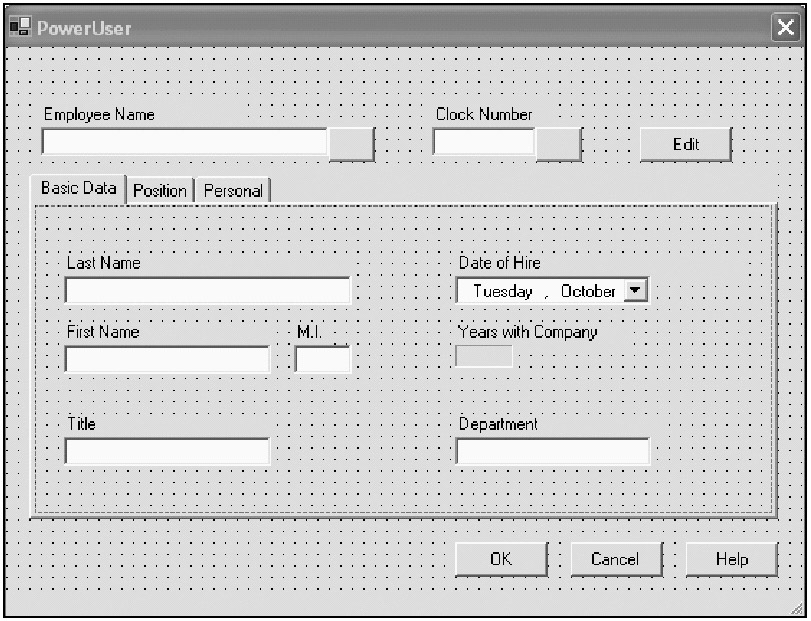 Select each tab and you will see all the controls are disabled. Now click the Edit button and your form should look like Figure 2-10.