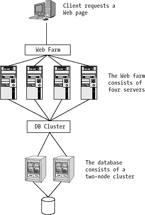 As mentioned earlier, these two technologies can work together. You can deploy NLB across the front-end Web servers and use MSCS at the back end to cluster the SQL Server providing the Web pages with data (see Figure 3-1). This way you make sure that both scalability and availability are as high as possible.