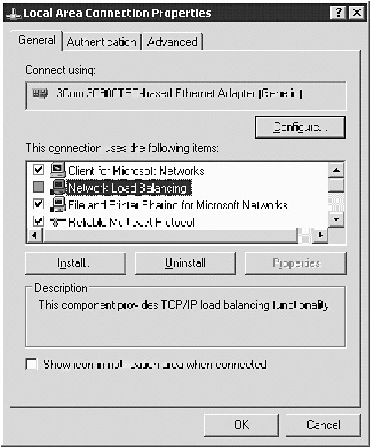 But upgrading is the way to go. Why? Well, Microsoft has made some big enhancements to NLB. NLB is not a virtual NIC anymore. Instead, it is an optional LAN service that is automatically installed with the operating system. When you want to use it, you just set the correct properties for it, as shown in Figure 3-5, and you are ready to rock.