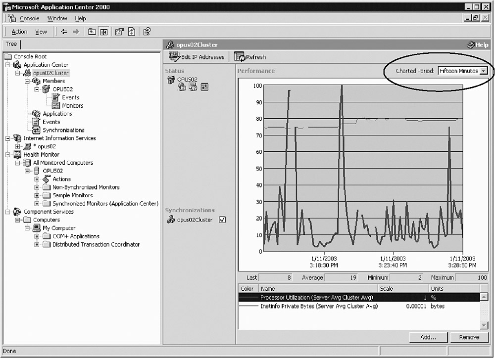 Application Center continuously records and displays different aspects of the health and functionality of your cluster (see Figure 3-15). These aspects are