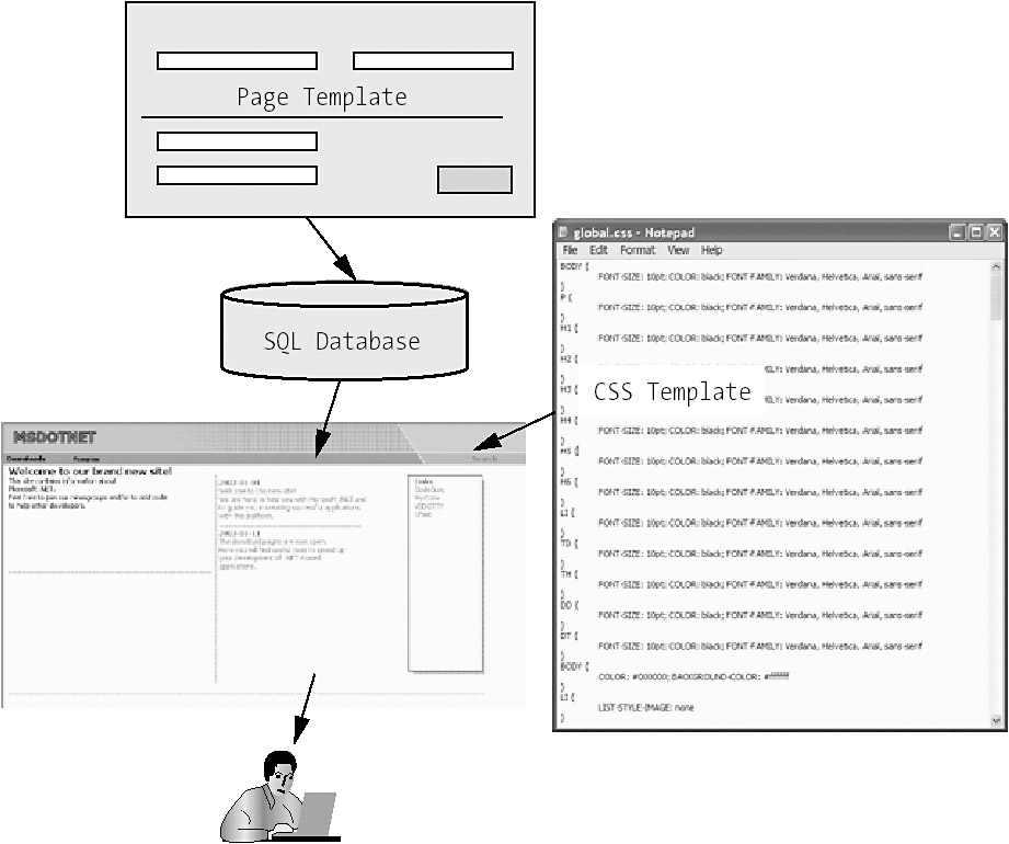 Microsoft Content Management Server, or CMS, is an enterprise-wide Web content management system based on .NET technologies, XML, and IIS. Microsoft Content Management Server relies, of course, on other Microsoft server products such as IIS for content publication and management. CMS also requires a Microsoft Server operating system like Windows 2000 Server or Windows Server 2003. You also need to install the latest Microsoft Data Access Components (MDAC) and a SQL Server 2000 database that is used as the repository for the CMS. If you want to use CMS, you should do so in a homogenous Microsoft environment—Microsoft tools work best together with Microsoft tools.