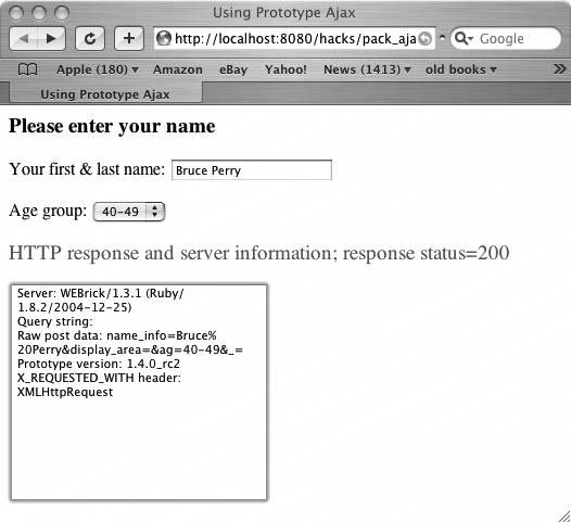 Hack 50. Use Prototype's Ajax Tools with Your Application