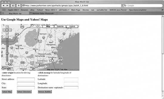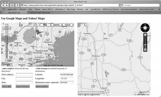 Hack 30. Use Ajax with a Google Maps and Yahoo! Maps Mash-up