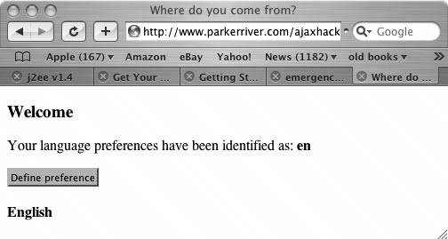 Figure 4-23 shows the hack in the Safari browser. Figure 4-23. An English language preference