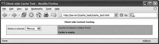 </HTML>This creates the initial web page shown in Figure 9-8. Figure 9-8. A client-side cache example