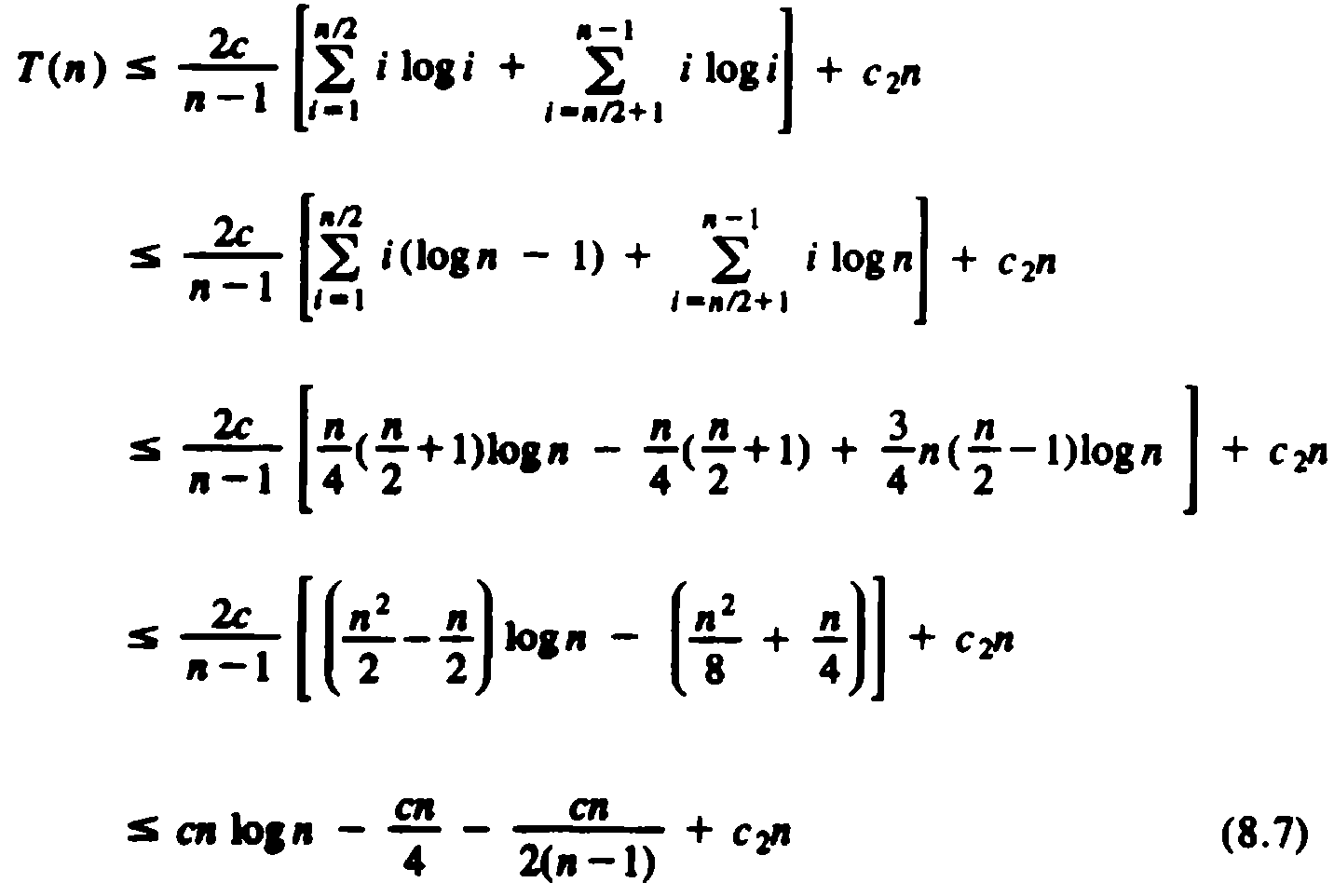 T(n) £ c2n + cn/5 + 3cn/4 £ c2n + 19cn/20 (8.16)