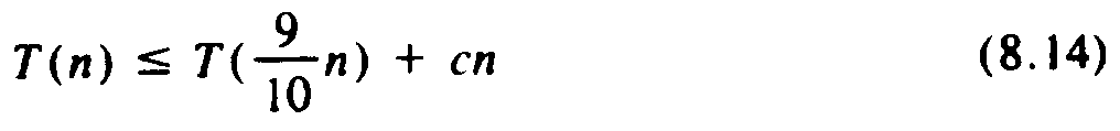 If we pick c = max(c1, 20c2), then by (8.16), we have T(n) £ cn/20 + cn/5 + 3cn/4 = cn, which we needed to show. Thus, T(n) is O(n).