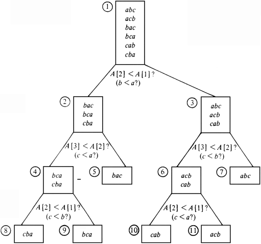 | *8.12 | We showed that sorting by comparisons takes W(n log n) comparisons in the worse case. Prove that this lower bound holds in the average case as well. |