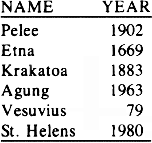 Example 8.1. Figure 8.3 shows a list of famous volcanoes, and a year in which each erupted.
