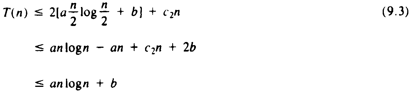 T(n) £ (c1 + c2)nlogn + c1 (9.4)