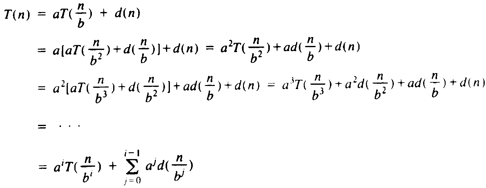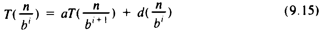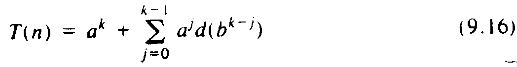 T(1) = 1 T(n) = aT(n/b) + d(n) (9.14)
