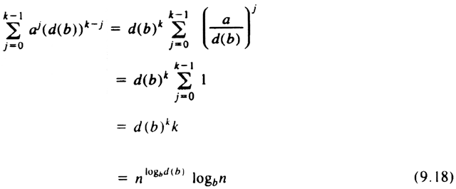 Since a = d(b), the particular solution given by (9.18) is logbn times the homogeneous solution, and again the particular solution exceeds the homogeneous. In the special case d(n) = na, (9.18) reduces to O(nalogn), by observations similar to those in Case (2).