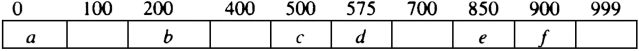 | 12.1 | Consider the following heap of 1000 bytes, where blank blocks are in use, and the labeled blocks are linked on a free list in alphabetical order. The numbers indicate the first byte in each block. |