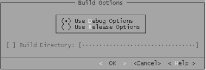 选择Options菜单中的Build Options菜单项,显示出画面1.5,并选择其中的Use Debug Options选项。
