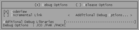选择Options菜单中的Link Options菜单项,与画面1.2所对应的是同一个画面,在此所要的部分画面如画面1.7所示,并选择CodeView选项。
