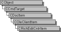 The CRichEditCntrItem class, with CRichEditView and CRichEditDoc, provides the functionality of the rich edit control within the context of MFC’s document view architecture. CRichEditView maintains the text and formatting characteristic of text. CRichEditDoc maintains the list of OLE client items which are in the view. CRichEditCntrItem provides container-side access to the OLE client item.