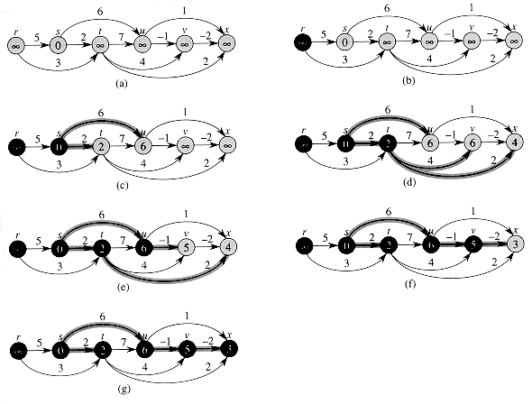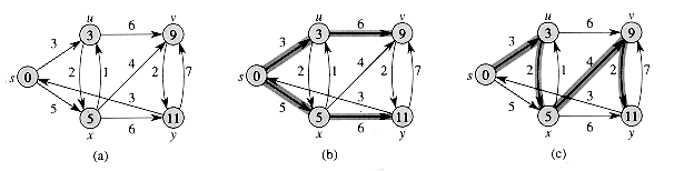 1It may seem strange that the term "relaxation" is used for an operation that tightens an upper bound. The use of the term is historical. The outcome of a relaxation step can be viewed as a relaxation of the constraint d[v]